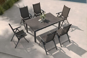 KETTLER Exklusivmodell BasicPlus 2026 Garten-Essgruppe, anthrazit matt/schwarz, Alu/Textilene, ausziehbare Tischplatte 160/260 x 100 cm, 6 Klappstühle