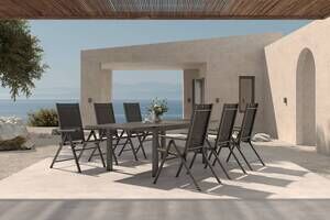 KETTLER BasicPlus Pro Garten-Essgruppe, anthrazit matt/schwarz, Alu/Textilene, ausziehbare Tischplatte 160/260 x 100 cm, 6 Klappstühle