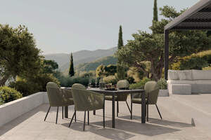 VILLANA Tareo Garten-Essgruppe, anthrazit/grün, Alu/Rope-Geflecht, Tisch 130/180 x 90 cm, 4 Diningsessel