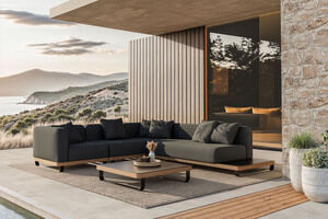 PLOSS Solera M Gartenlounge, anthrazit/schwarz, Alu/Polyester/Glas, 290 x 200 cm, wetterfest, Quick Dry Foam, Holzdekor