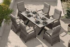 SIENA GARDEN Garten-Essgruppe, schwarz/grau, Alu/Polyrattan, Tischplatte ausziehbar 200/260 x 100 cm, inkl. 6 Diningsessel