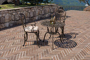 OUTFLEXX Cambridge Balkon-Set mit 2 Stühlen, bronze/khaki, Gussaluminium/Polyester, Tisch Ø 60 cm, inkl. Kissen, pulverbeschichtet
