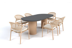 HARTMAN Shades of Colour Valencia/Taragona Garten-Essgruppe, cappuccino/beige/anthrazit, Alu/Keramik/Rope, ovaler Tisch 220 x 100 cm, inkl. 6 Stapelsessel