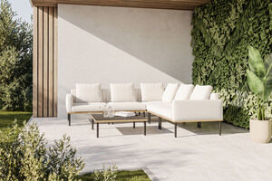 PLOSS Lunare Light Gartenlounge, cashmere sand/anthrazit, Aluminium, Tisch 86 x 86 cm, Holzdekor, Quick Dry Foam