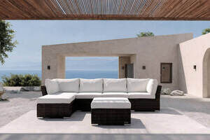 OUTFLEXX Gartenlounge, braun marmoriert, Polyrattan, inkl. Kaffeetisch, für 5 Personen, wasserfeste Kissenbox