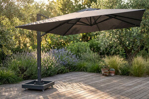 OUTFLEXX Ultimate XL Ampelschirm, anthrazit/grau, Alu/Spuncrylic®, 450 x 450 cm, inkl. befüllbarem Schirmständer