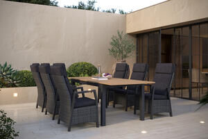 OUTFLEXX Nova Garten-Essgruppe mit 6 Sesseln, anthrazit/grau, Alu/Polyrattan/Teak, Tisch 183/243 x 100 cm, verstellbare Rückenlehne