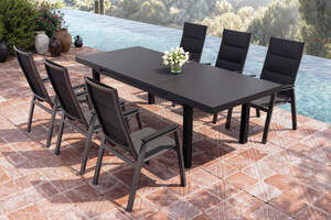 SIENA GARDEN Garten-Essgruppe, anthrazit matt/grau, Alu/Glas/Textilfaser, 180/240 x 100 cm, ausziehbar, stapelbar