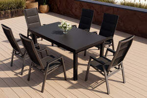 SIENA GARDEN Garten-Essgruppe, anthrazit/grau, Alu/Glas/Textilene, 180/240 x 100 cm, ausziehbar, stapelbar