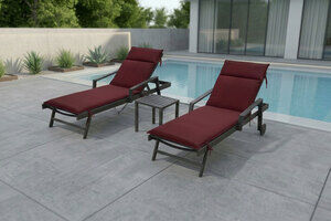 OUTFLEXX Liegen-Set, anthrazit/bordeaux, Alu/Textilene/Polyester, Tisch 40x40cm, 2 Auflagen, mit Rollen, Rückenlehne verstellbar