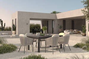 OUTFLEXX Tavio Garten-Essgruppe, anthrazit matt/beige, Alu/Rope-Geflecht, Tisch 180/240 x 100 cm, 6 Diningsessel