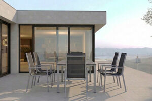 KETTLER Cubic Garten-Essgruppe, silber/anthrazit/grau, Alu/Textilene, Tisch 160x90 cm, 6 Stapelsessel
