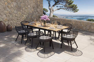 OUTFLEXX Doha Garten-Essgruppe, anthrazit matt/natur, Alu/Teak/Rope, Ausziehtisch 180/240 x 100 cm, inkl. 8 Dining Sessel