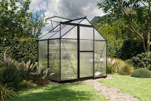 OUTFLEXX Verde Basic Gewächshaus, schwarzer Rahmen, Aluminium/Polycarbonat, 130x183x190 cm, pulverbeschichtet, UV-geschützt, mit Schiebetür
