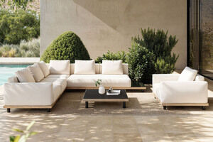 PLOSS Lunare L Gartenlounge, cashmere Sand/anthrazit, Alu/Sinterstein, inkl. Polster, Holzdekor, Quick Dry Foam