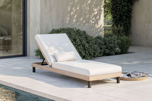 PLOSS Lunare Gartenliege, cashmere sand/anthrazit, Alu/Polyester/Schaumstoff, Holzdekor, 205 x 90, verstellbar, inkl. Polster