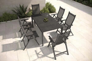 SIENA GARDEN Ricon Garten-Essgruppe, anthrazit/dark concrete, Aluminium/Textilene/Glas, Tisch 160x90cm, 4x Klappstühle, Langlebig