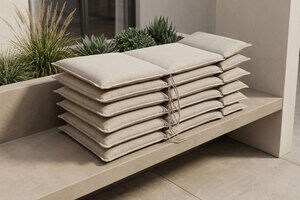 OUTFLEXX Green 6er-Set Sitzkissen für Hochlehner, nature, recyceltes Polyester, hautsympathisch, mit Rückengurt und Bindekordeln