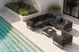 PLOSS Solera Light Gartenlounge, anthrazit/schwarz, Alu/Polyester/Glas, 80 x 80 cm, Quick Dry Foam, Holzdekor, inkl. Einsitzer-Sofa