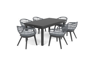 OUTFLEXX Doha Garten-Essgruppe, anthrazit matt/grau, Alu/Rope-Geflecht, Ausziehtisch 180/240 x 100 cm, inkl. 6 Sessel