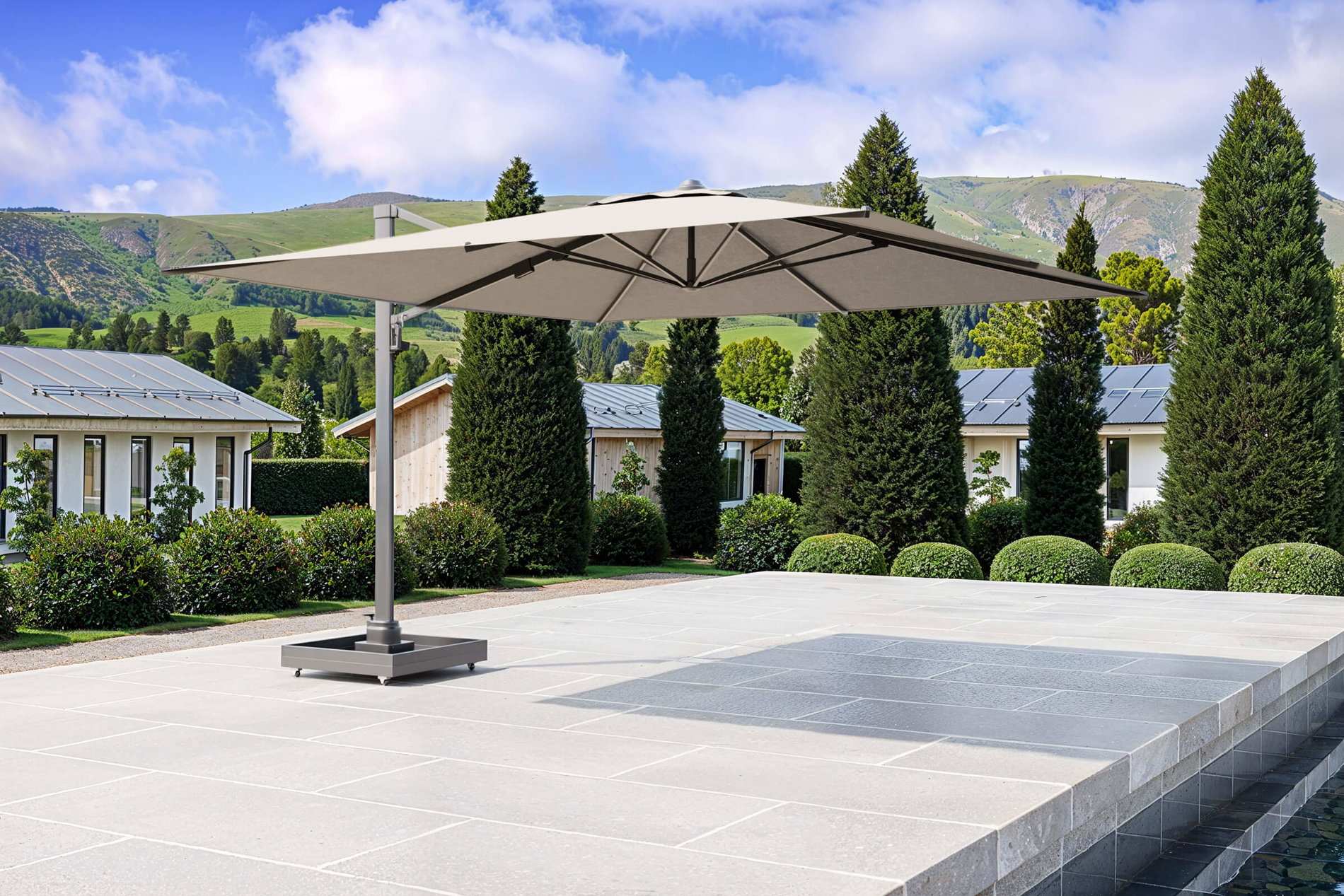 OUTFLEXX Ultimate XL Ampelschirm, anthrazit/creme, Alu/Spuncrylic®, 450 x 450 cm, inkl. befüllbarem Schirmständer