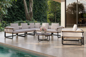 PLOSS Reverie Light Gartenlounge, creme/anthrazit/natur, Aluminium/Polyester/Glas, 80 x 80 cm, Holzdekor, inkl. Sessel
