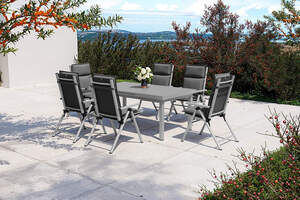 KETTLER Exklusivmodell BasicPlus 2026 Garten-Essgruppe, silber/anthrazit, Alu/Textilene, 180/240 x 100 cm, 6 Klappstühle inkl. 6 Auflagen