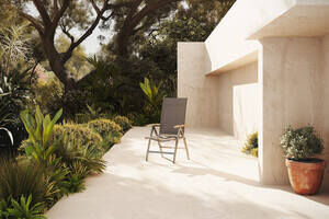 OUTFLEXX Klappstuhl, taupe, Edelstahl/Textilene, Armlehnen aus Teakholz