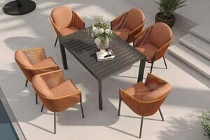 VILLANA Tareo Garten-Essgruppe, anthrazit/orange, Alu/Rope-Geflecht, ausziehbare Tischplatte 130/180 x 90 cm, 6 Diningsessel