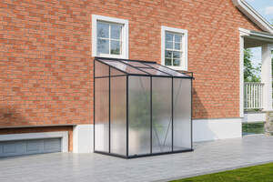 OUTFLEXX Verde Anlehn-Gewächshaus, schwarzer Rahmen, Aluminium pulverbeschichtet mit 4 mm Polycarbonatplatten, 192 x 125 x 210 cm, UV-beständig, mit Schiebetür und Belüftungsfenster