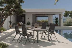 KETTLER BasicPlus Pro Garten-Essgruppe, silber/anthrazit, Alu/Textilene/Sicherheitsglas, 160 x 95 cm, 4 Klappstühle