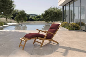 OUTFLEXX Matera Gartenliege, natur/bordeaux, Teakholz/Polyester, 165 x 58 cm, klappbar, witterungsbeständig, mit Fußkappen