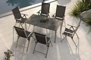 KETTLER BasicPlus Pro Garten-Essgruppe, silber/anthrazit, Alu/Textilene, 160 x 90 cm, 6 Klappstühle