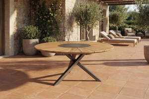 OUTFLEXX Esstisch, Edelstahl/Teakholz, Ø 170cm, inkl. drehbarer Granitplatte und Eiskühler, FSC®-zertifiziertes Produkt