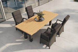 HARTMAN Nova Garten-Essgruppe mit 4 Sesseln, anthrazit/grau, Alu/Polyrattan/Teak, 240 x 100 cm Tisch, verstellbare Rückenlehne