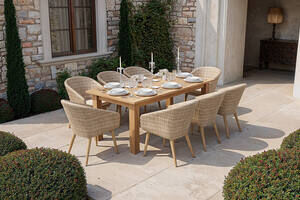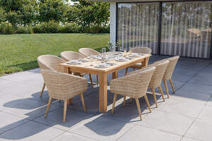 OUTFLEXX Borneo Garten-Essgruppe, natur/beige, Akazie/Polyrattan, Esstisch ausziehbar 180/220/260 x 100 cm, 8 Stühle mit Polster, FSC®-zertifiziertes Produkt