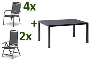 HARTMAN Raffaelo Garten-Essgruppe, xerix/anthrazit, Alu/Spraystone/Teak, 160x95 cm, 4 Stapelsessel, 2 Klappstühle, Teak Armlehnen