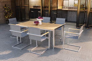 OUTFLEXX Garten-Essgruppe, taupe, Edelstahl/Teak, Tisch 180x90cm, 6 Freischwinger gepolstert