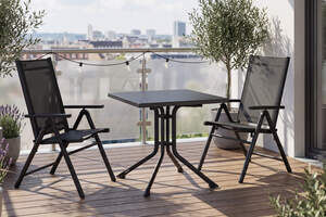 KETTLER BasicPlus Pro Balkon-Set, anthrazit, Aluminium/KETTALUX/Textilene, Tisch 70 x 70 cm, 2 Klappstühle, ergonomisch