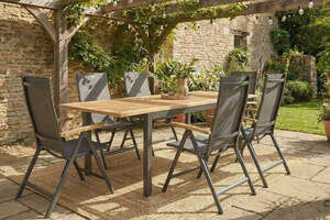 HARTMAN Aruba Garten-Essgruppe, xerix/natur, Alu/Teak, 6 Hochlehner, 150/210x90cm