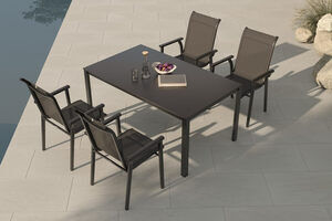 KETTLER BasicPlus Pro Garten-Essgruppe, anthrazit/silber, Aluminium/KETTALUX/Textilene, 160 x 95 cm, 4 Stapelstühle