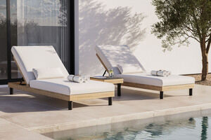 PLOSS Lunare Gartenliegen 2er Set, anthrazit/ cashmere sand, Alu/Polyester/Schaumstoff, 205 x 90 cm, 6-fach verstellbar, inkl. Beistelltisch
