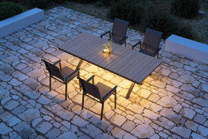 KETTLER BasicPlus Pro Garten-Essgruppe, anthrazit/natur, Alu/Holzimitat, LED-Beleuchtung, Tischplatte 240 x 100 cm, 4 Stapelsessel