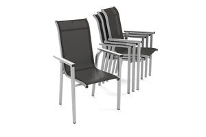 KETTLER BasicPlus Pro Stapelsessel 4er-Set, silber/anthrazit, Aluminium/Textilene, 70 x 65 x 99 cm, stapelbar