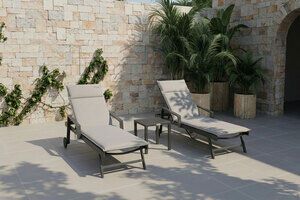 OUTFLEXX Liegen-Set, anthrazit/nature, Alu/Textilene/Polyester, Tisch 40x40cm, 2 Auflagen, Rückenlehne verstellbar, rollbar