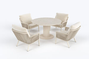 HARTMAN Shades of Colour Zaragoza Garten-Essgruppe, beige, Alu/Keramik/Rope, Tisch 120 x 120 cm, inkl. 4 Low Dining-Sessel