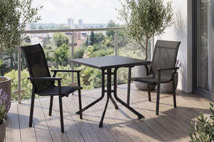 KETTLER BasicPlus Pro Balkon-Set, anthrazit, Aluminium/KETTALUX/Textilene, Tisch 70 x 70 cm, 2 Stapelsessel, robust