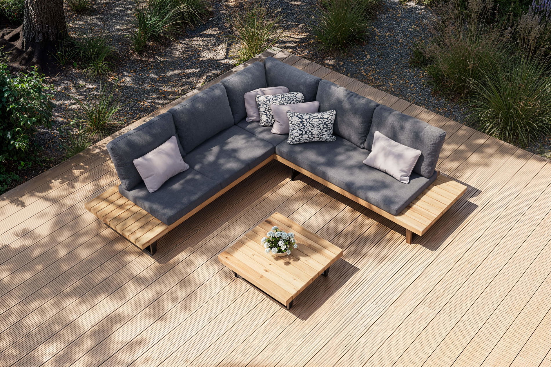OUTFLEXX Bahamas Ecklounge, anthrazit, Akazie, 5 Personen, inkl. Polster und Kaffeetisch 77 x 77 cm, FSC®-zertifiziertes Produkt