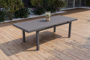 OUTFLEXX Premium Ausziehtisch, anthrazit matt/grau, Alu/Glas, 180/240x100cm, automatischer Ausziehmechanismus