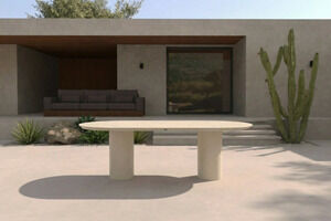HARTMAN Shades of Colour Valencia Esstisch, sand/beige, Aluminium/Keramik, 220 x 100 cm, mit ovaler Keramikplatte und stabilem Säulengestell